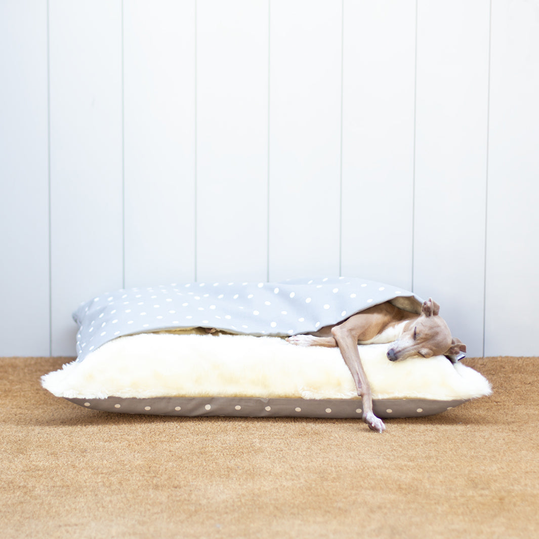 Our signature bed, the one that launched our little company, the Charley Chau dog Snuggle Bed is a sleeping bag style dog bed with a deep-filled luxury mattress in the base to keep all dogs that love to under cover in the comfort they deserve. Perfect for any dog that loves to burrow and sleep under blankets including: short-coated hounds from Dachshunds to Hungarian Vizslas; Sighthounds, especially Italian Greyhounds and Whippets; and Terrier dogs who were bred to go to ground; plus many more.