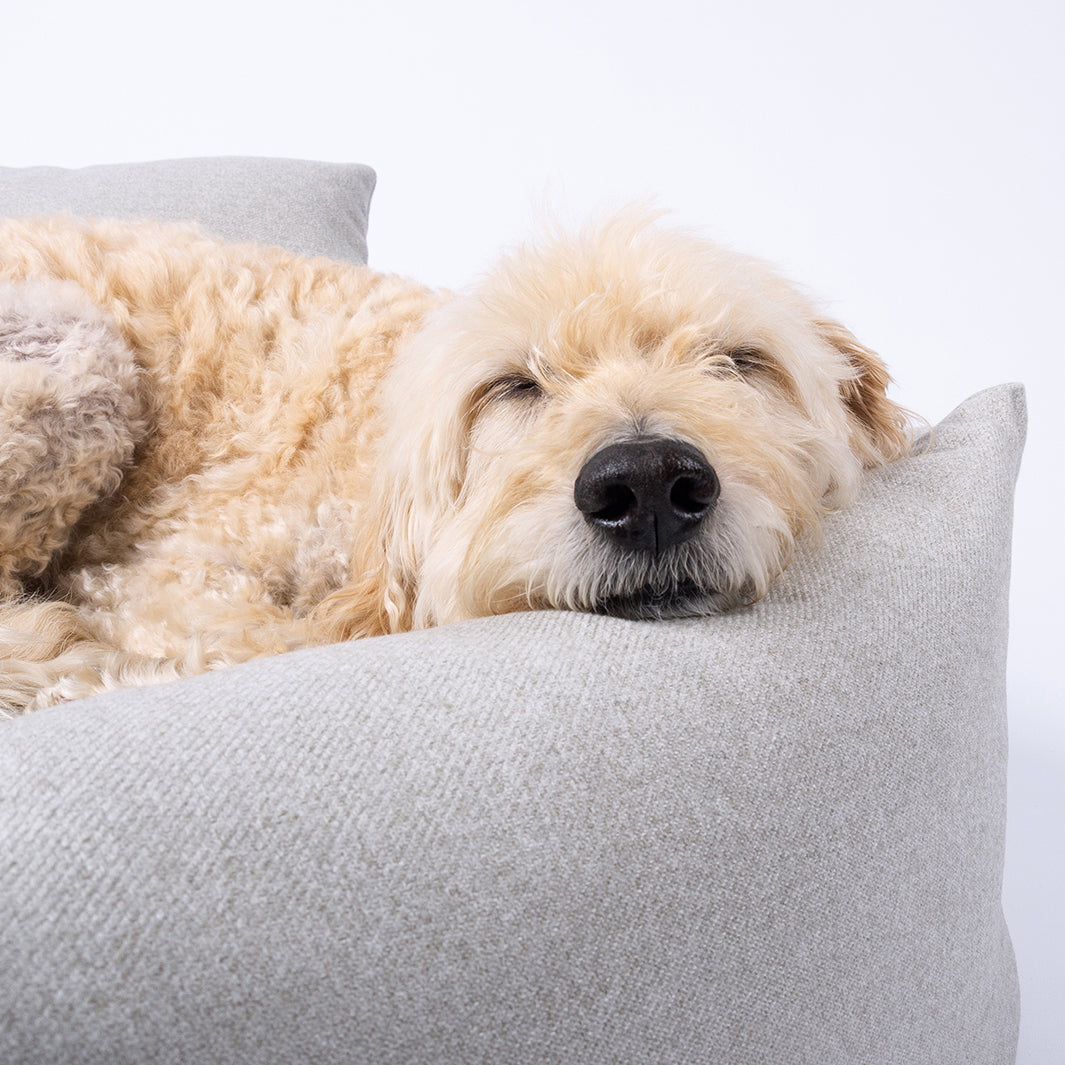 A cosy bolster nest, filled with ethically-sourced feather bolster pads, creates a cocoon around your dog as they hunker down and settle in to our deep-filled luxury mattress. Your dog can nestle into the sides, rest their chin on top, or squish and squash to their heart's content but the bed will always plump- back to shape. Finished in Faroe, one of our most technical upholstery fabrics to date with the look and feel of wool without the maintenance headache. The Bliss Bolster Bed stands in a class of its own for comfort, style and performance.