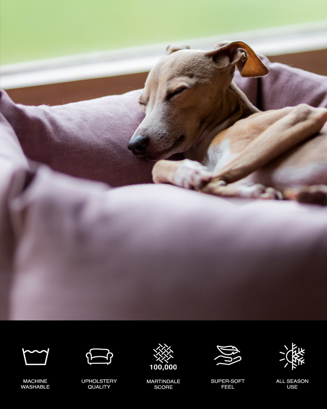 Specifically selected for our collection of round dog beds for its beautiful drape and handle, Cosmo feels as soft and comforting as brushed cotton but behind that unassuming exterior is a high-performance upholstery fabric that is as tough as old canvas with exceptional wear-resistance.