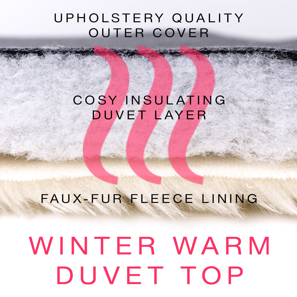 Our Classic Snuggle Bed, re-designed with a winter-warm padded duvet top for your dog to snuggle under an additional layer of insulating wadding to trap more warm air around your dog through the colder winter weather.