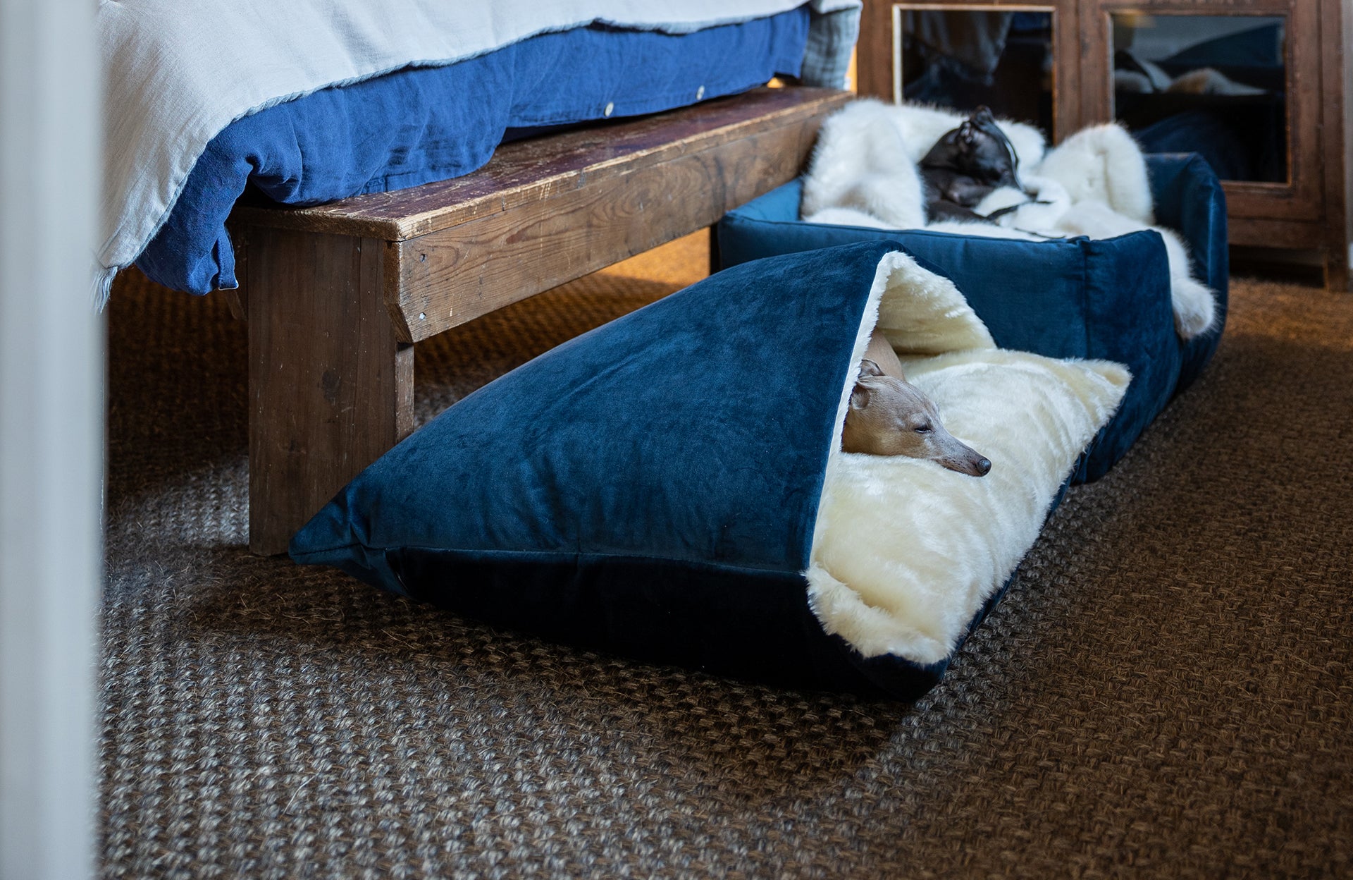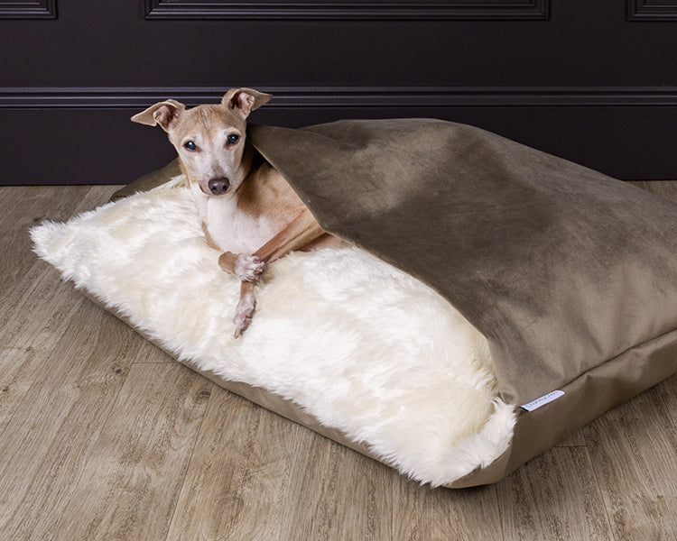 Layering made simple for dogs that love to burrow under blankets - our signature Snuggle Bed - available with a classic blanket top or an extra warm duvet top with extra padding.