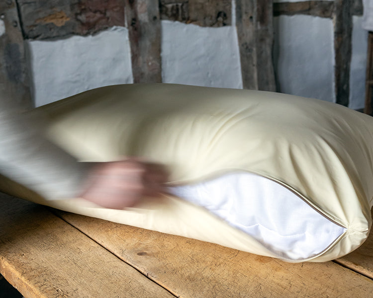 A feather-filled donut nest filled with ethically sourced feathers - a warm, cosy cocoon that wraps around your dog to protect from draughts.