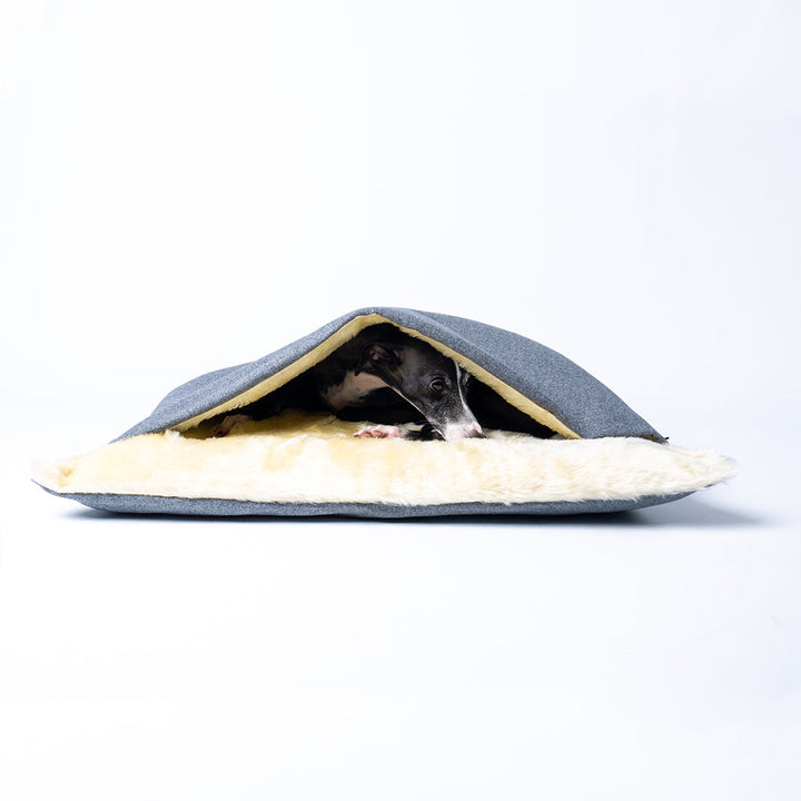 If your dog is a burrower and loves to sleep under cover but doesn’t need the deep-filled luxury mattress of our original dog Snuggle Bed then a Burrow Bag Dog Bed is the perfect choice. The same gorgeous cover as on our Snuggle Beds, but with a slimline mattress in the base, easily transportable and brilliant for travelling to keep your dog comfortable and settled wherever you are.