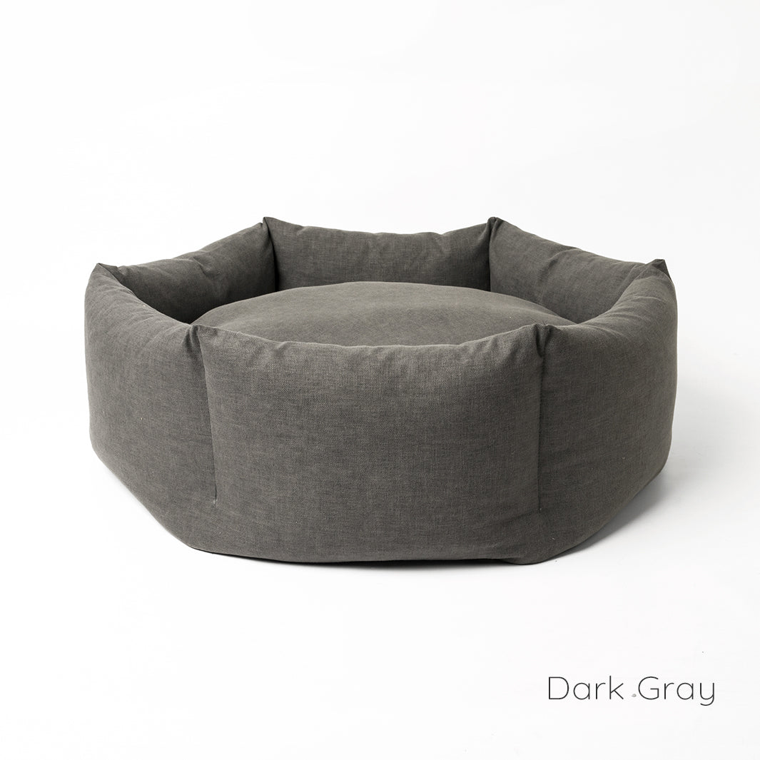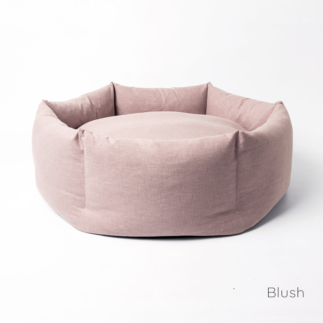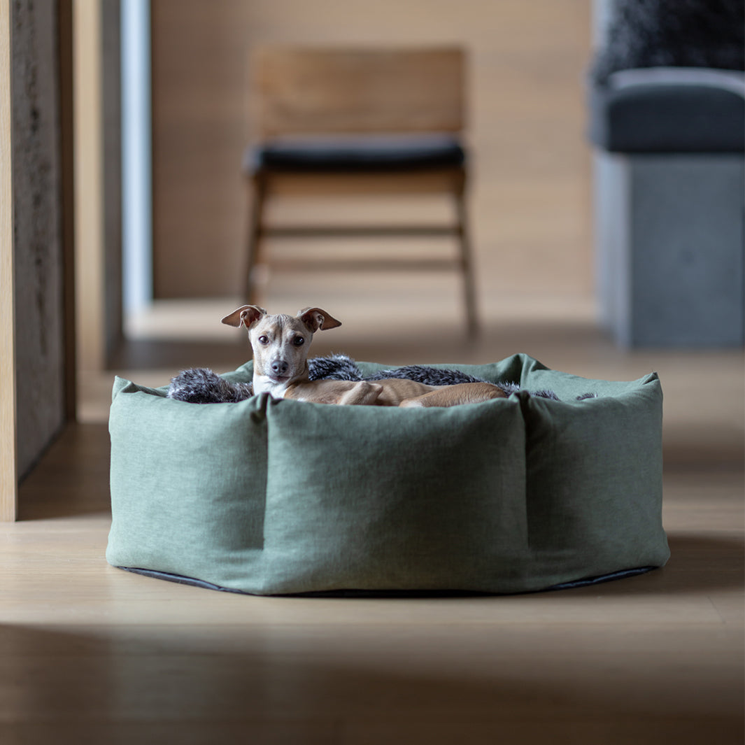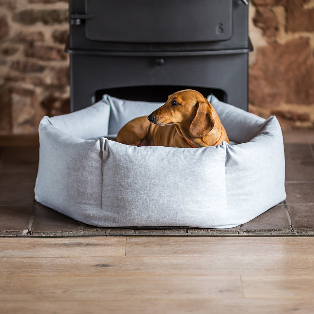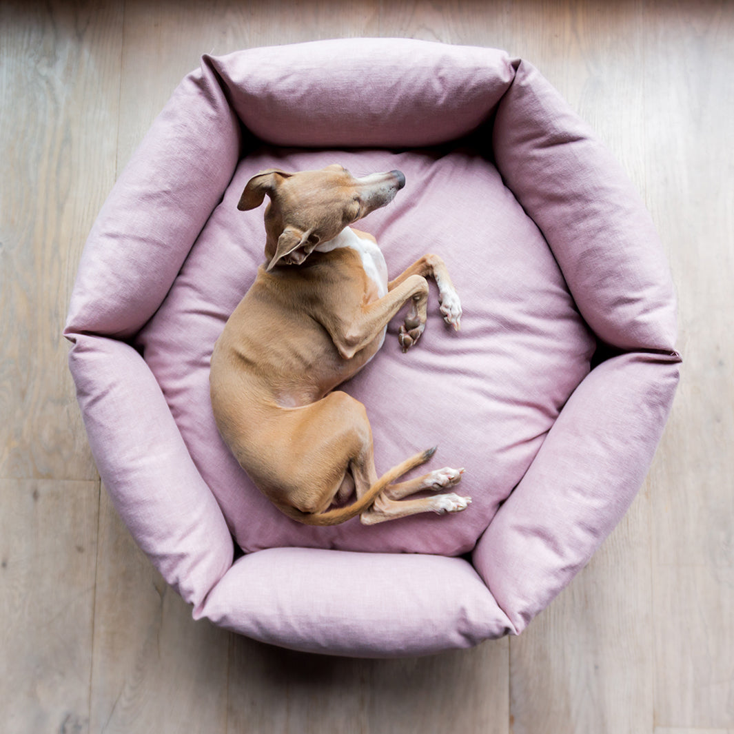 We spent six years developing our Ducky Donut Dog Bed to design the best Donut Bed that we thought possible – a donut bed that wraps itself around your dog, calming and comforting, but one that will perform over time – the sides are filled with ethically sourced duck feathers so they can be squished and squashed but will always come back to shape. Finished in Cosmo with a soft, brushed cotton feel but behind that beautiful fabric is some serious substance – a Martindale Rub Test of 100,000 making it suitable for severe commercial use.