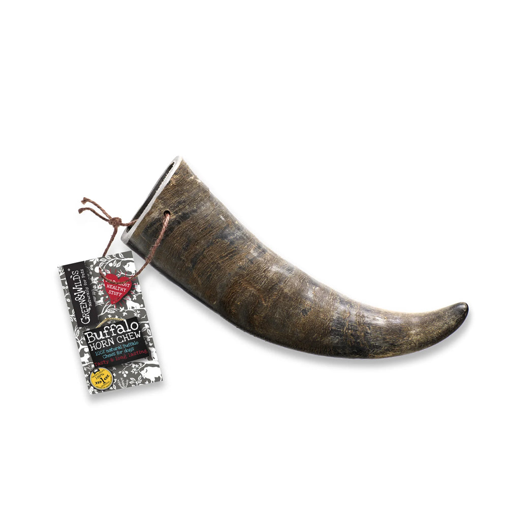Buffalo Horns are an amazing, natural and long-lasting dog chew for dogs, packed with nutrients and free from chemicals, preservatives, or colourings. Green & Wild’s Buffalo Horn Chews are a premium quality horn, hand graded, washed and sanded to produce a lovingly prepared 100% natural dog chew with single-ingredient goodness and zero artificial nasties.
