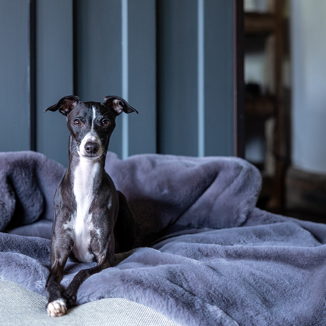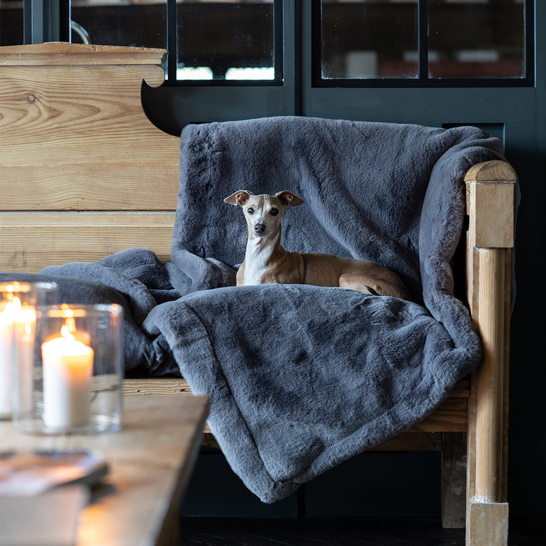 A stunning Faux-Fur Dog Blanket, backed with super-soft anti-pil fleece, a luxury blanket for dogs that is as practical as it is gorgeous.
