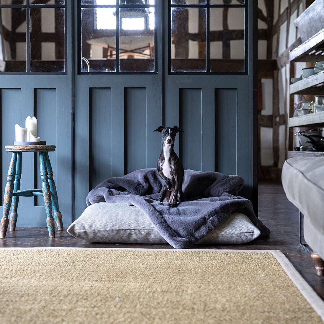 Smoky blue tones, and a buttery soft feel, the Russian Blue Faux-Fur Dog Blanket is as popular with our human customers as with our dog customers! Faux-Fur Dog Blankets raise the comfort levels in any dog bed instantly, creating an uber-cosy space for your dog to settle in, helping to keep them calm, cosy and content. Also fabulous on sofas and armchairs.